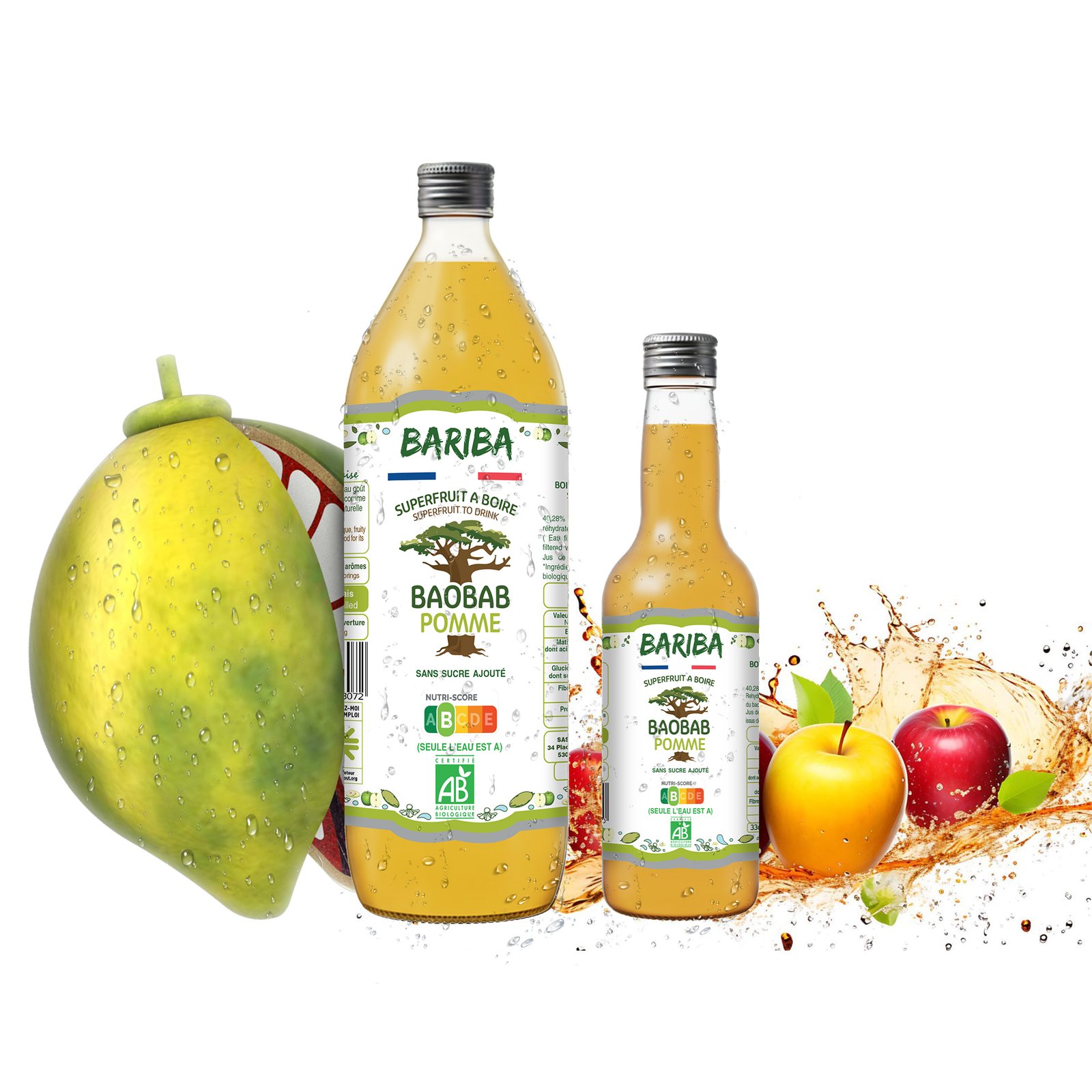 Eau – Poudre de baobab bio – Jus de pomme bio français